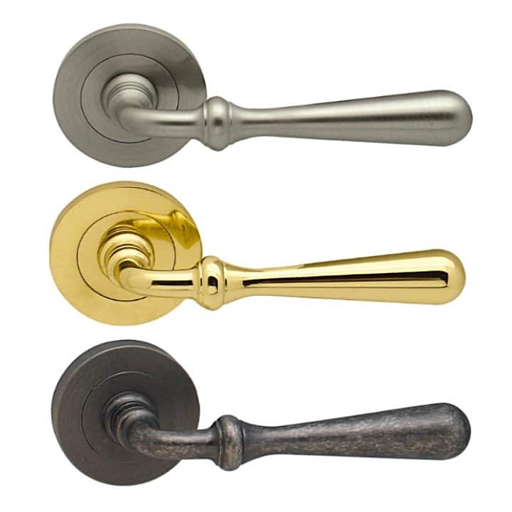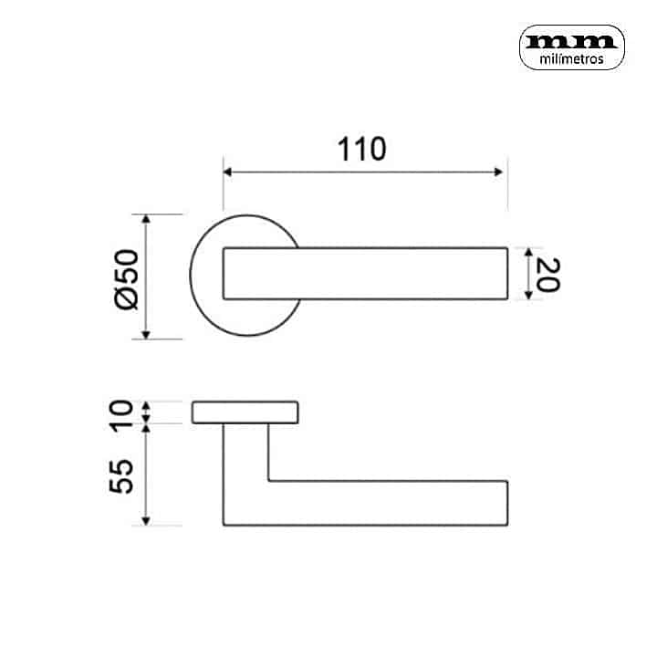 Manilla con roseta redonda de Ø50 mm para puertas de paso y de entrada. Una manivela cuyo diseño se integra perfectamente en cualquier decoración.
