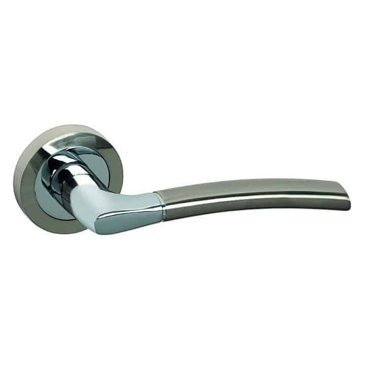 Juego de Manillas con roseta redonda de Ø50mm. Diseño moderno y maneta curvada.