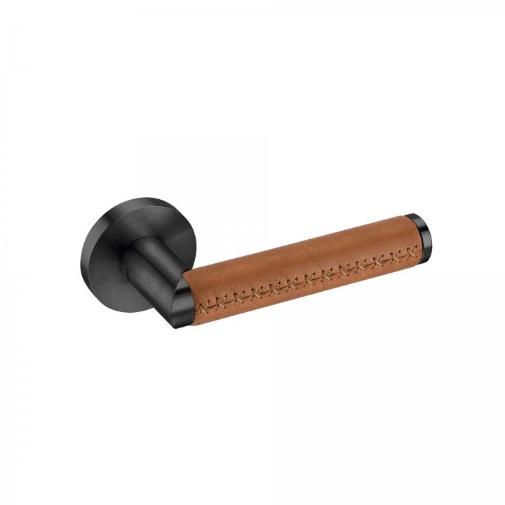 SATINADO TITANIUM BLACK (NEGRO) + PIEL NATURAL (CUERO) CAMEL.