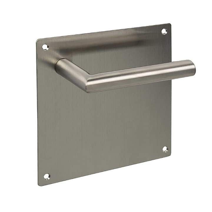 Juego de Manillas en forma de «L» con placa cuadrada de 170x170mm para puertas.
