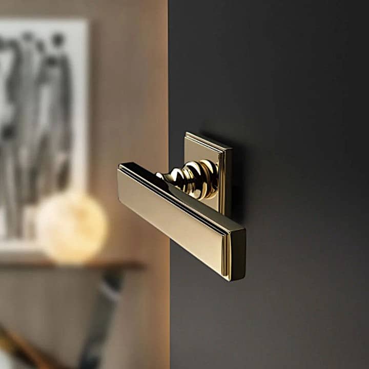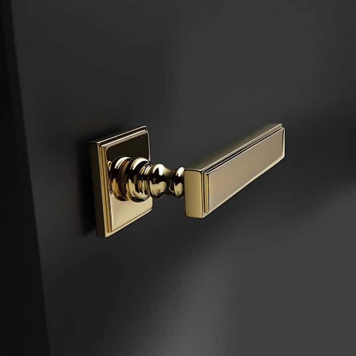 Diseño contemporáneo de un clásico. La manilla para puerta de diseño Malika, brillante por su propia armonía de líneas consecutivas y cuello torneado, se presenta sobre una roseta cuadrada. Esta manilla de diseño italiano, fabricada en latón estampado de alta calidad, está concebida para puertas de interior y exterior, ofreciendo elegancia, tradición y vanguardia.