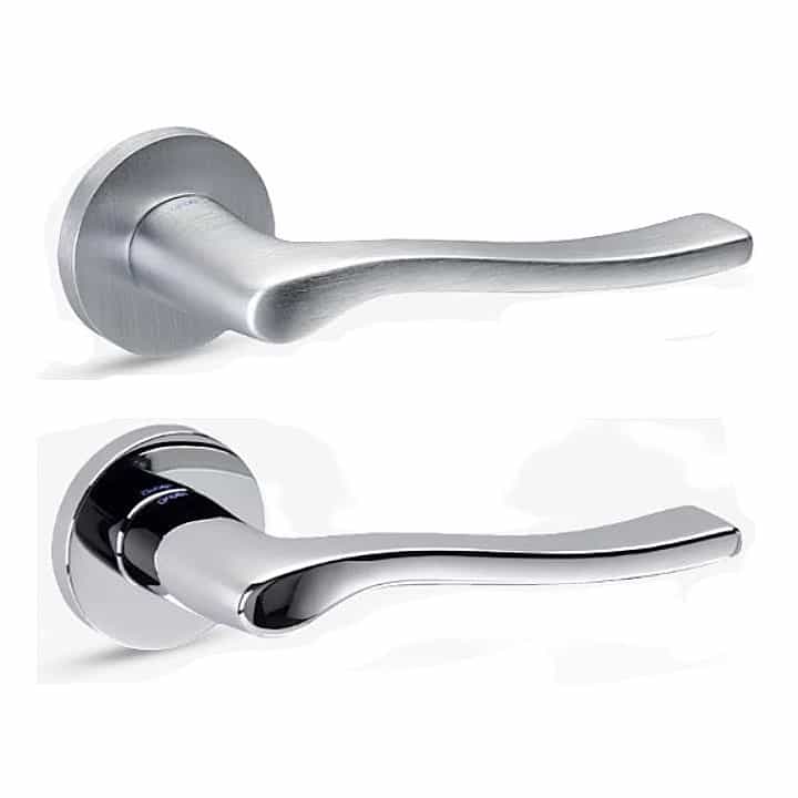 La manilla para puerta de diseño Nina, de estilo cálido y sutiles matices que evoca la entrañable paz del hogar, se presenta sobre una roseta redonda. Esta manilla de diseño Italiano, está concebida para puertas de interior y exterior, dando vida y personalidad a su puerta.