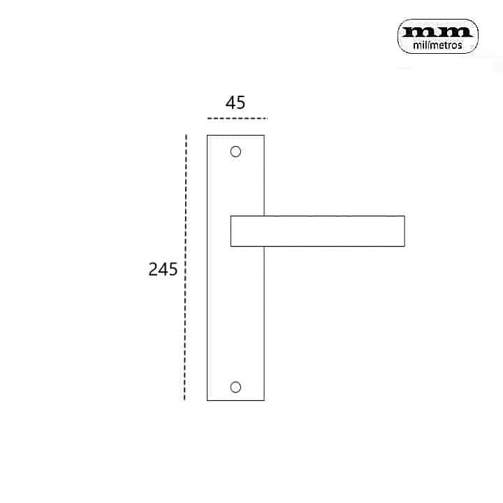 Juego de manillas con placa rectangular de tornillos vistos y ángulos rectos. De estilo moderno y actual.