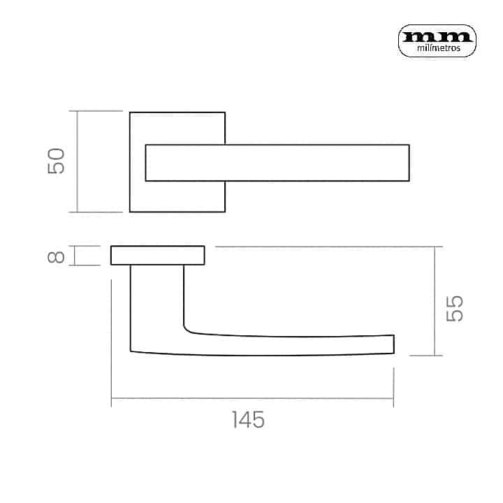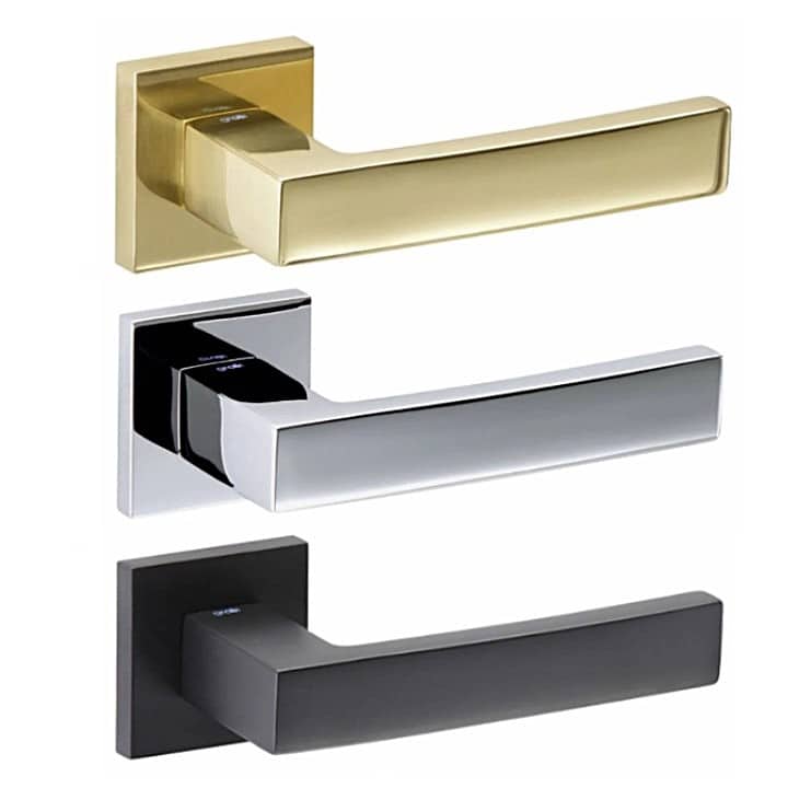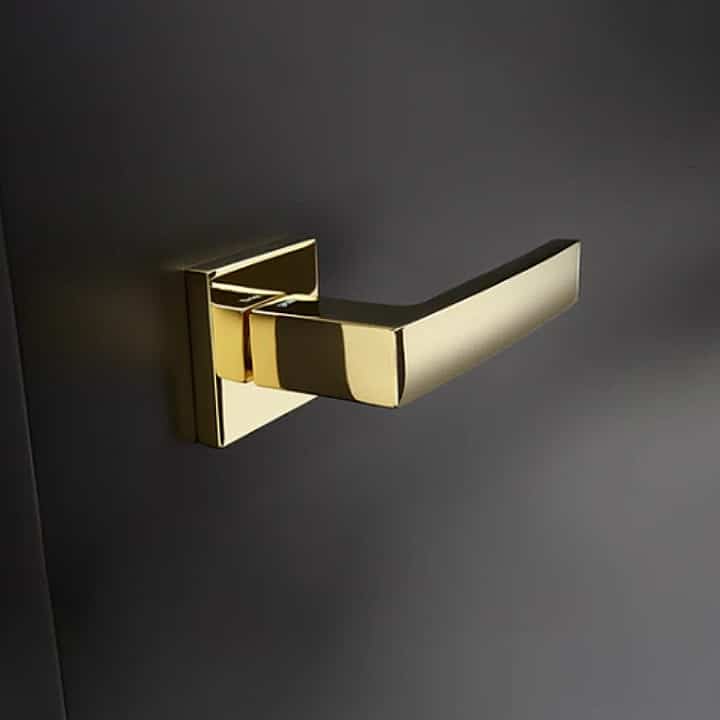 La manilla para puerta de diseño Ángolo, de estilo contemporáneo y una ligera curva en su empuñadura, se presenta sobre una roseta cuadrada. Esta manilla de diseño italiano, fabricada en latón estampado de calidad, está concebida para puertas de interior y exterior, convirtiéndose en la protagonista de cualquier espacio.