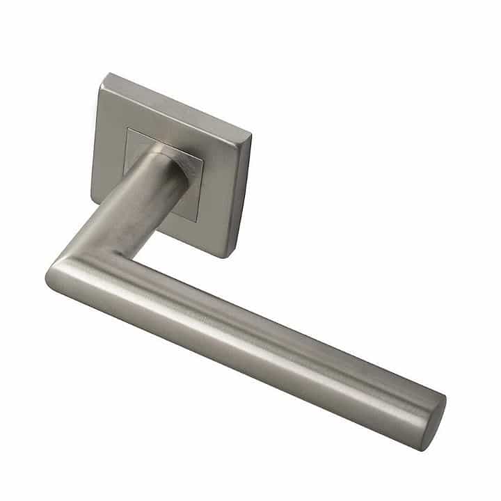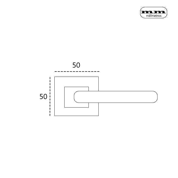Juego de Manillas, de estilo moderno en forma de «L» recta tubular con roseta cuadrada de 50x50mm para puertas.
