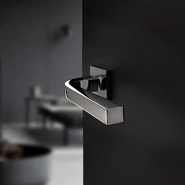 La manilla para puerta de diseño Touch, con un estilo compacto y apariencia robusta, se presenta sobre una roseta cuadrada. Esta manilla de diseño italiano, fabricada en latón estampado de calidad, está concebida para puertas de interior y exterior, convirtiéndose en un modelo perfecto para ambientes sobrios.