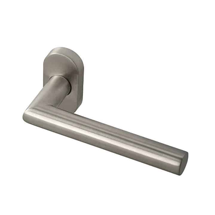 Juego de Manillas en forma de «L» recta tubular con roseta oval para puertas.