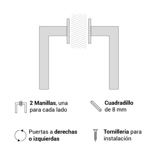 -INCLUYE DOS MANILLAS (UNA PARA CADA LADO DE LA PUERTA) Y ACCESORIOS DE MONTAJE.