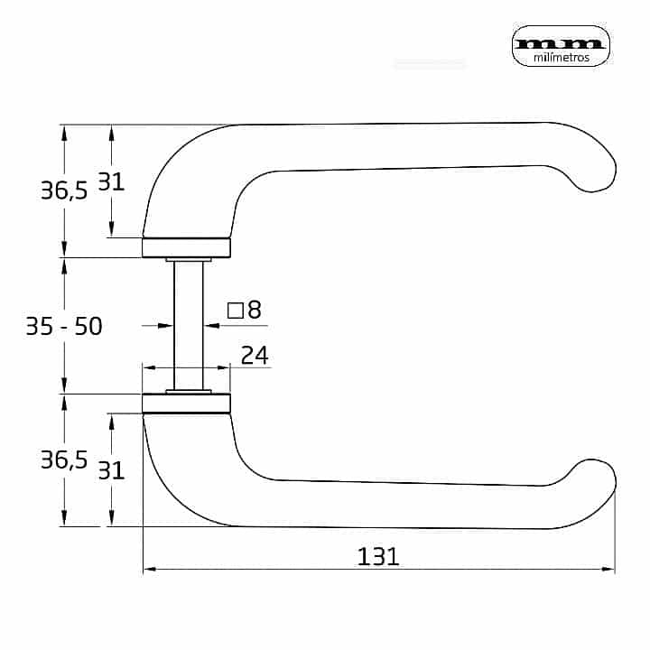-Incluye 2 manillas (una para cada lado de la puerta) + Cuadradillo + Fijaciones.