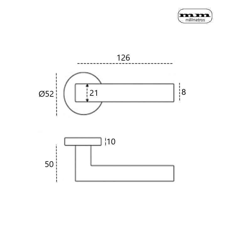 Manilla con roseta redonda de Ø50 mm para puertas de paso y de entrada. Manivela de diseño moderno.