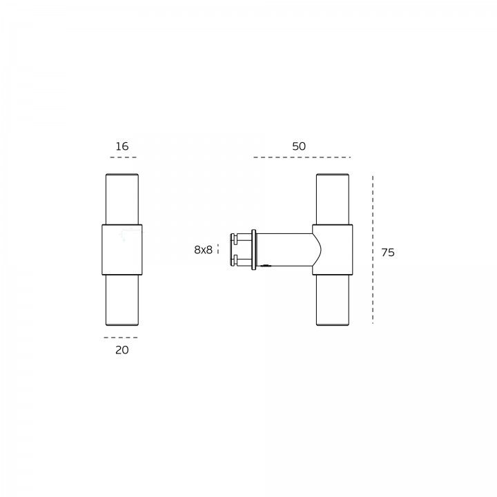 JUEGO DE MANILLA EN FORMA DE «T» CON ROSETA REDONDA METÁLICA DE Ø50mm.