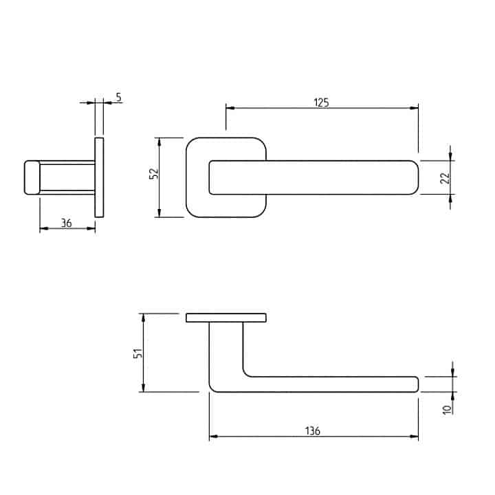 Juego de manillas de diseño moderno con roseta cuadrada de 52x52mm. TUPAI 6502 5SQRC.
