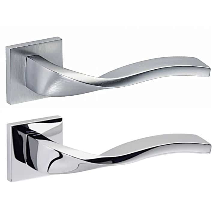La manilla para puerta de diseño Vol.la, de minuciosa combinación de planos y curvas de la forma más escrupulosa, se presenta sobre una roseta cuadrada. Esta manilla de diseño italiano, fabricada en latón estampado de alta calidad, da como resultado un propósito único: la excelencia del diseño.