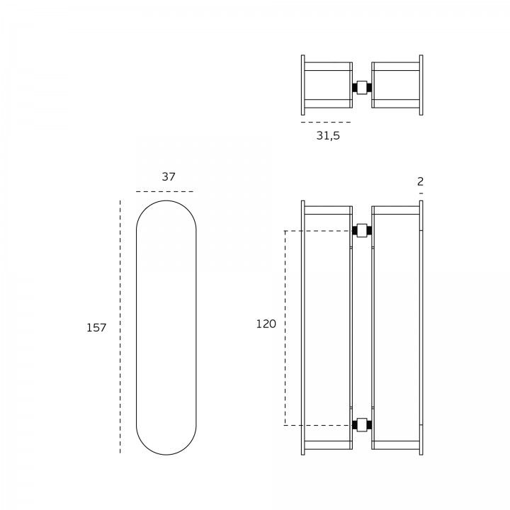 JUEGO DE POMO TIRADOR FIJO PARA PUERTAS DE CRISTAL/VIDRIO O CABINAS SANITARIAS.