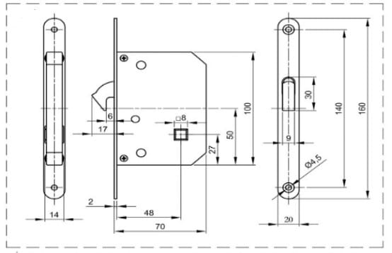 CERRADURA DE PICO DE LORO DE EMBUTIR PARA PUERTAS CORREDERAS.
