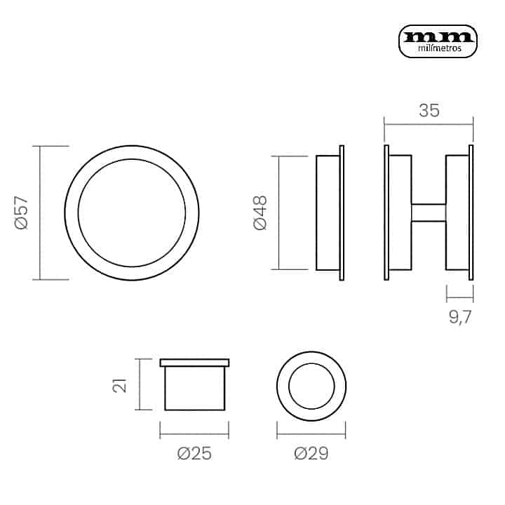 -Medidas Uñeros con condena: Ø57mm (Exterior) y Ø48mm (Interior).