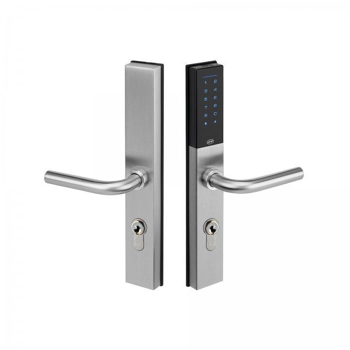 -La manilla está en el exterior, sólo se activa con la tarjeta, código y huella digital