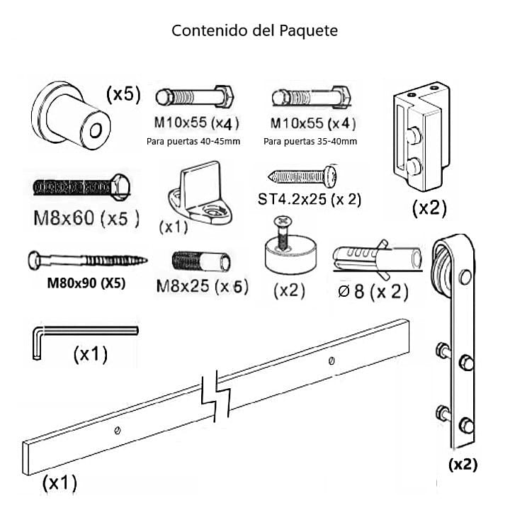 Juego de Guía con accesorios de montaje para puertas correderas.