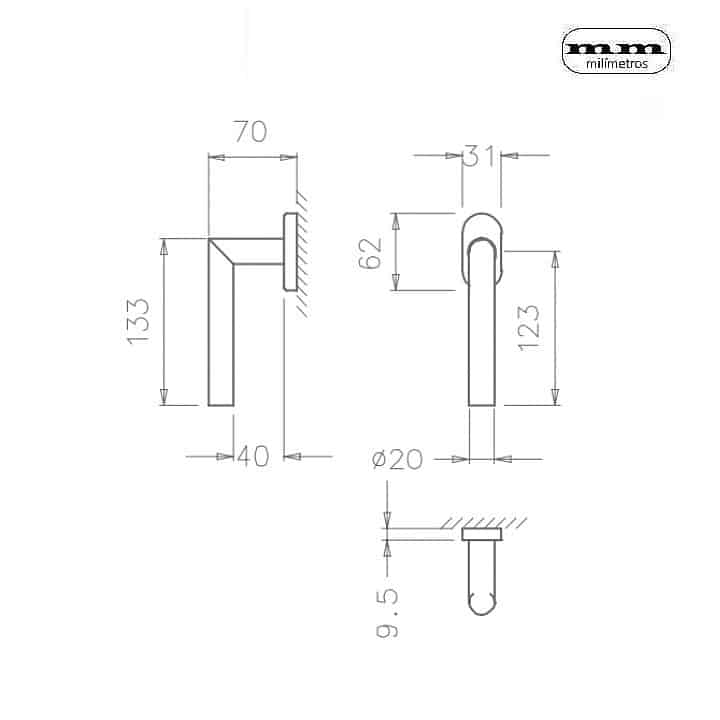 -Material: Acero. -Acabado: Negro / Inox Satinado. -8 posiciones. -Cuadradillo de 7mm. -Zona de Agarre: Ø20mm. -Medida Mecanismo: 62x31mm. -Largo Manilla: 133mm. -Inlcuye 1 manilla y 1 mecanismo para ventanas.