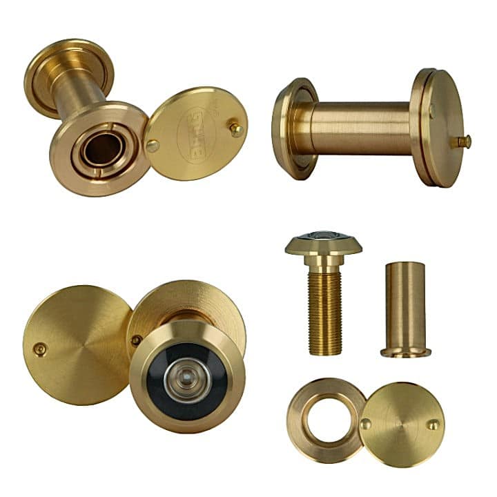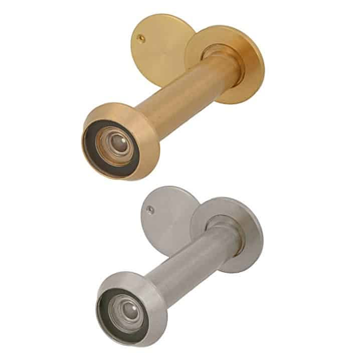 -Material: Laton Macizo. -Acabado: Pulido (Dorado) / Cromado Mate. -Ángulo de visión superangular de 105 grados. -Tapa trasera maciza. -Diámetro: Ø14mm. -Para puerta 70-110 mm. -Incluye 1 Mirilla.