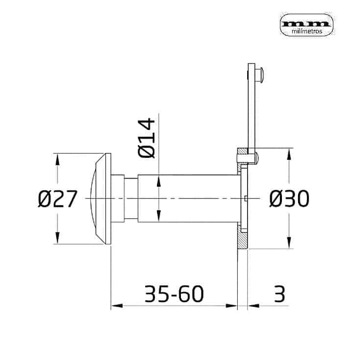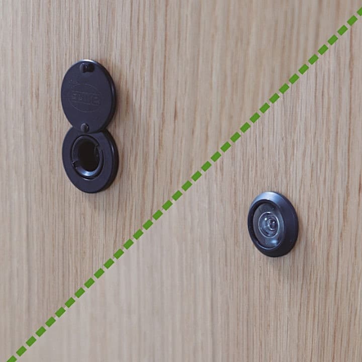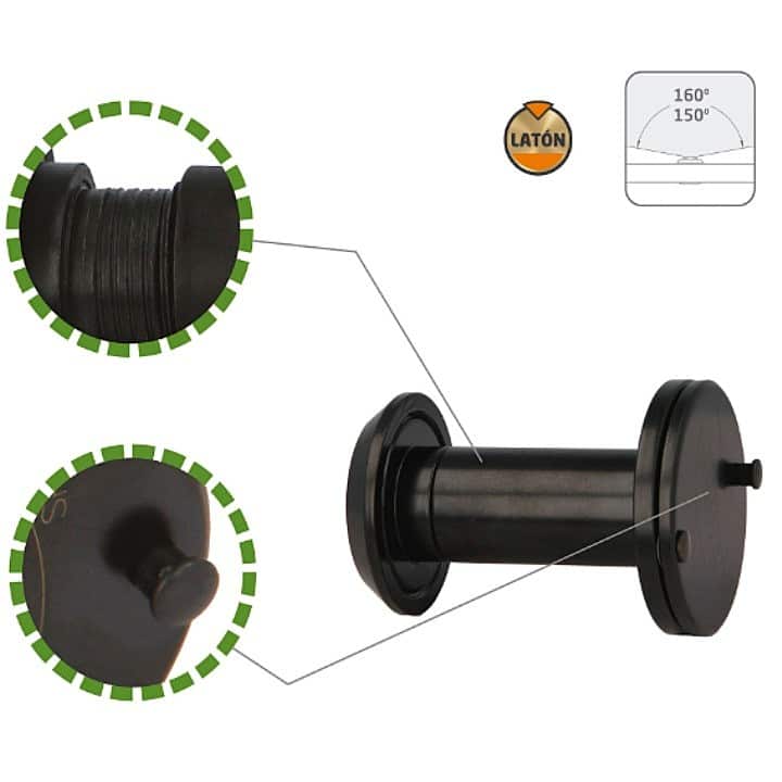 Mirilla con lente óptica de Alta calidad superangular de 160º para puertas para puertas de acceso a viviendas o locales, interiores y exteriores. Su gran ángulo de visión permite identificar a una o varias personas al otro lado de la puerta.