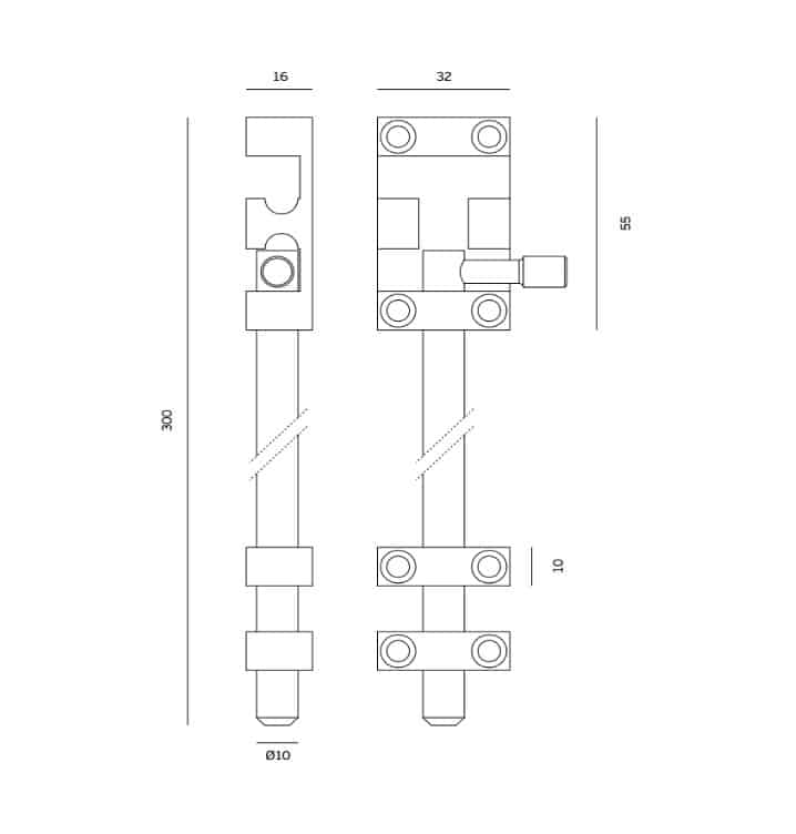 PASADOR DE 300mm DE LARGO PARA PUERTAS.