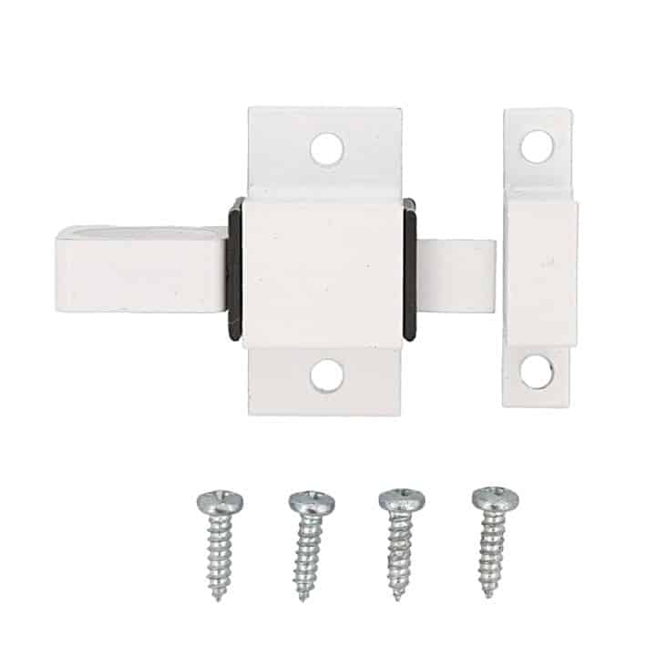 Pasador compacto de sobreponer recomendado para ventanas abatibles pequeñas. Instalación mediante fijación con tirafondos. Material recomendable para ambientes húmedos.