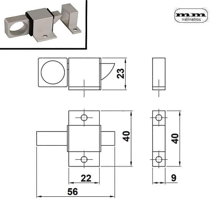 -Material: Aluminio. -Acabados: Blanco / Plata. -Medidas: 22x40mm. -Incluye 1 Pasador.