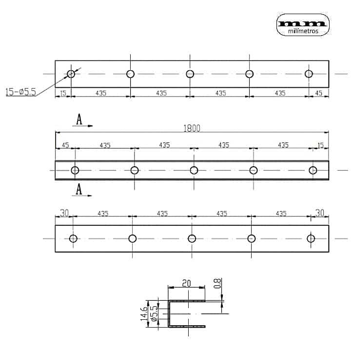-Material: Acero Inoxidable AISI 304. -Acabado: Inox. -Medidas: 14.6x20x8mm (Alto x Ancho x Grosor). -Largo: 1800mm (1.8 metros). -Incluye 1 Perfil.