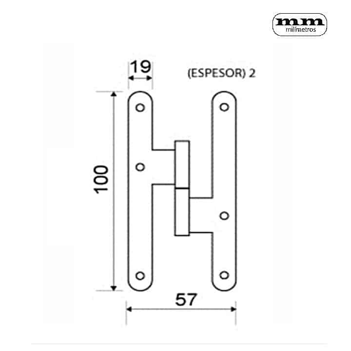 -Material: Hierro. -Acabado: Negro. -Mano Apertura: Izquierda / Derecha. -Medida: 100x57x2mm. -Incluye 1 Pernio.