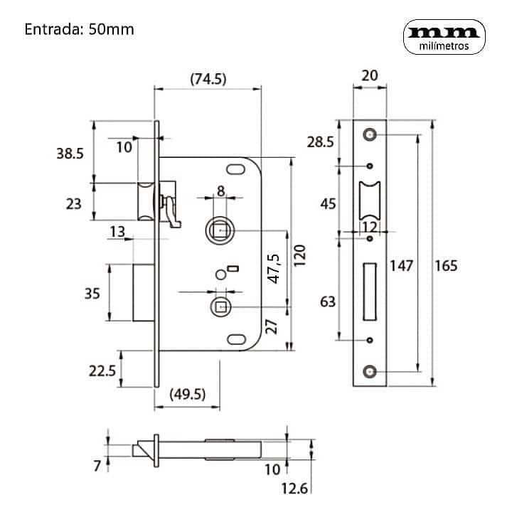 Picaporte/Cerradura de Embutir con Condena para puertas de madera.