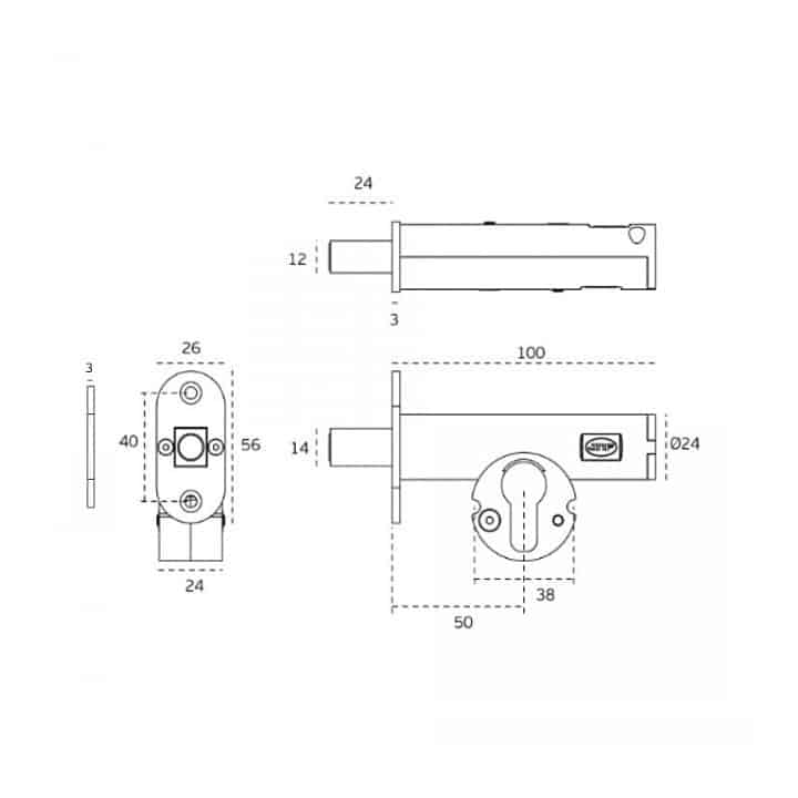 Picaporte Tubular Reversible de embutir para cilindro Europeo. JNF IN.20.154