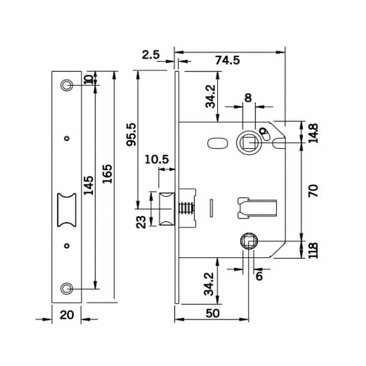 -Frente estrecho de 20mm adecuado para puertas con solapa.