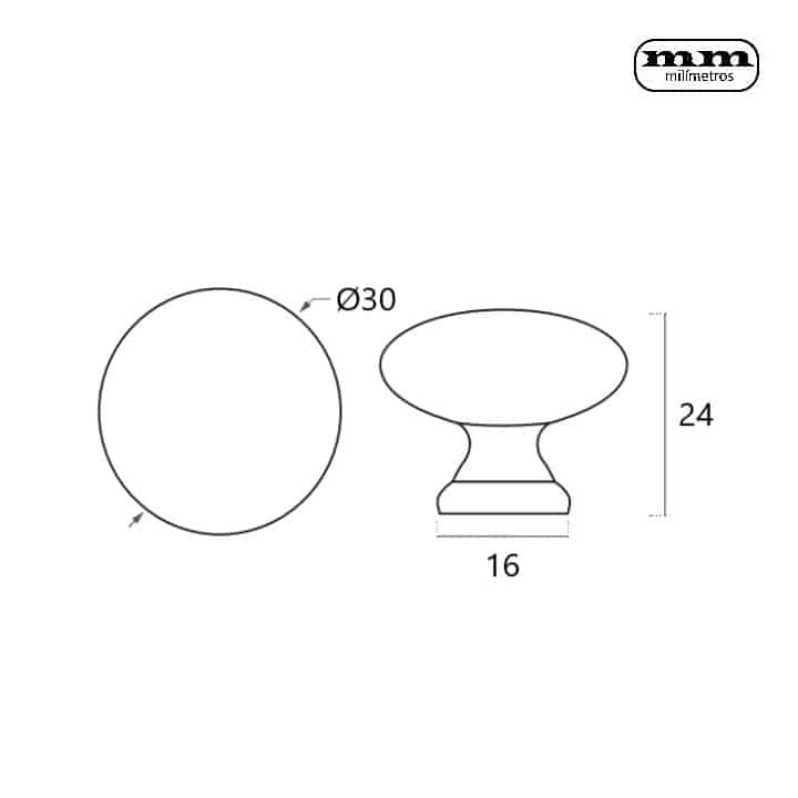 -Material: Zamak. -Acabado: Oxido Negro. -Diámetro: Ø30mm. -Incluye 1 Pomo.