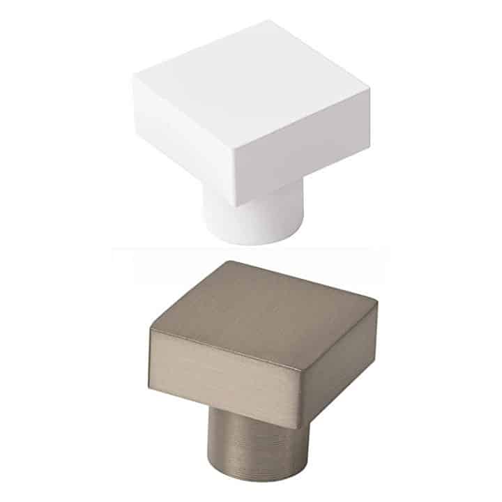 -Material: Zamak. -Acabados: Blanco Mate / Níquel Satinado. -Medida: 25x25mm (alto x ancho). -Incluye 1 Pomo.