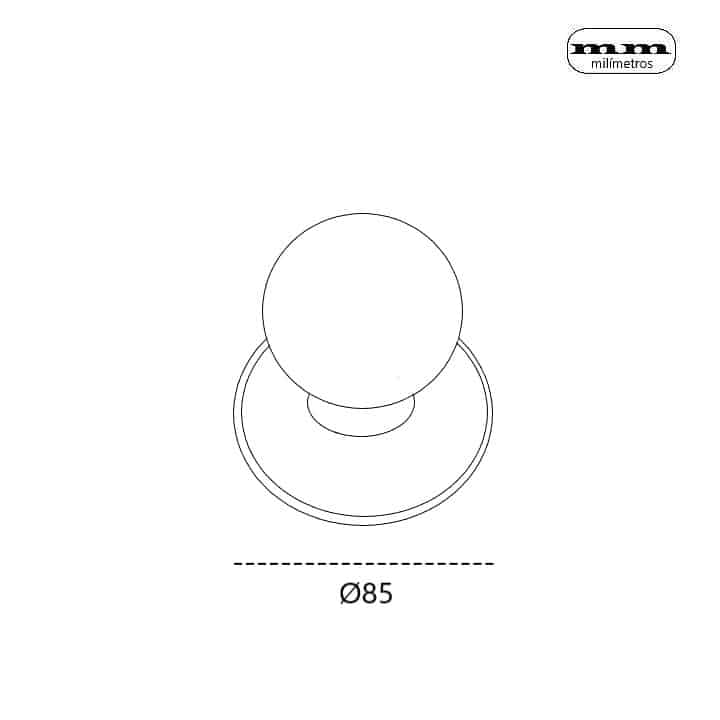 Pomo fijo en forma de seta con Ø85mm para puertas de Entrada.