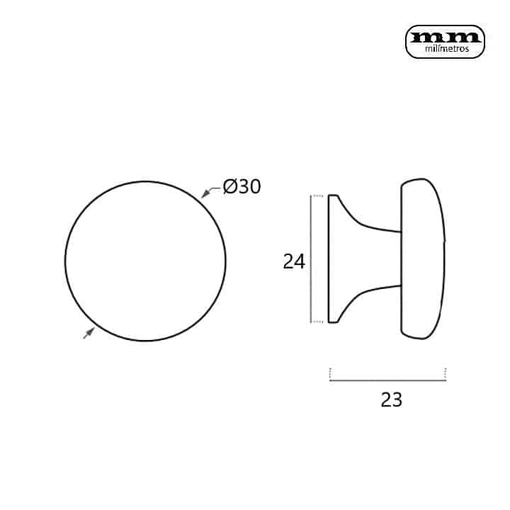 Pomo Tirador con forma redonda para muebles, cajones, armarios…etc. Muy utilizado en armarios de cocina y baño.