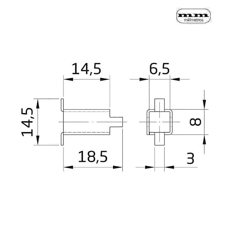 Suplemento reductor del cuadradillo de 8 mm a 6 mm.