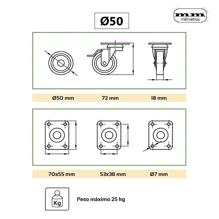 -Peso máximo recomendado: 17Kg (Ø40mm) / 25Kg (Ø50mm).