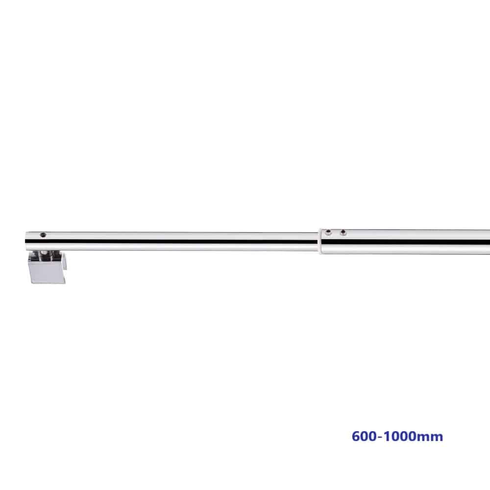 SOPORTE AJUSTABLE PARA CRISTAL/VIDRIO. -FABRICADO EN LATÓN CON ACABADO EN CROMADO. -MEDIDAS: 600mm a 1000mm. -INCLUYE 1 SOPORTE. — FVA.278.361