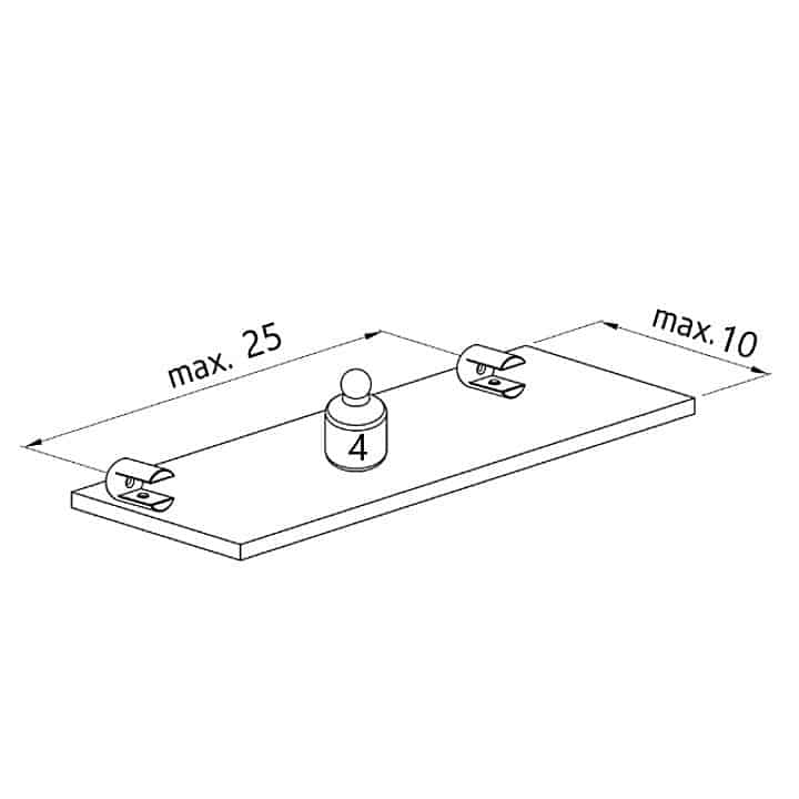 -Material: Zamak. -Acabado: Cromado. -Medidas: Ø16x30mm. -Peso máximo recomendado: 4Kg (Ver imagen). -Recomendación: Largo: 25mm o inferior – Ancho:10mm o inferior. -Incluye 1 Soporte + tacos + Tornillos.