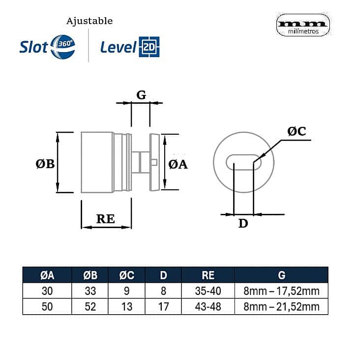 -Diámetros: Ø30mm / Ø50mm.