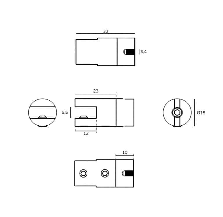 Soporte de cable de acero de 2,5mm y 3mm para cristal.