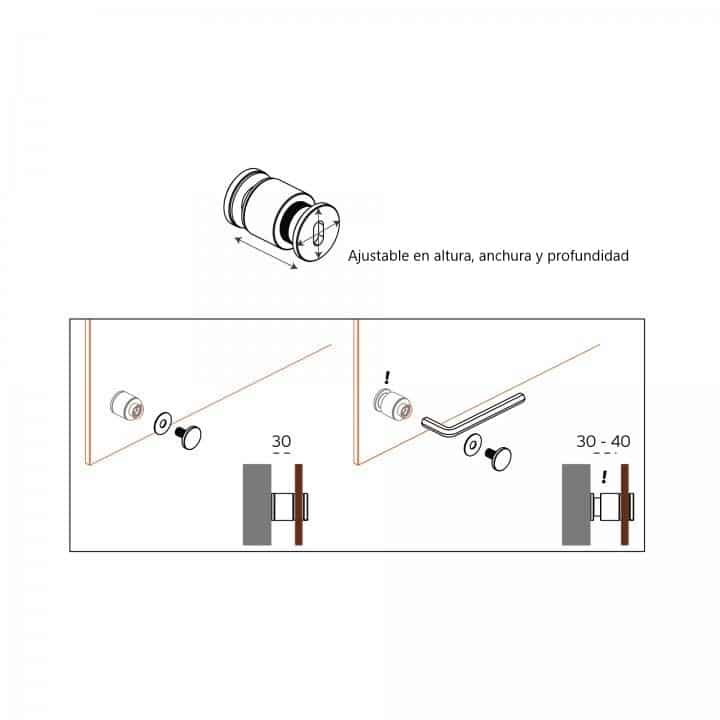 SOPORTE DE PARED PARA CRISTAL C/AJUSTE 3D – JNF – INOX