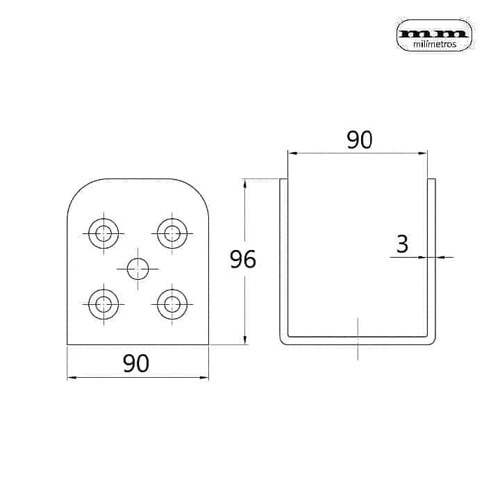 -Material: Acero. -Acabado: Bricomatado. -Medidas: 90x90x96x3mm. -Incluye 1 Soporte.