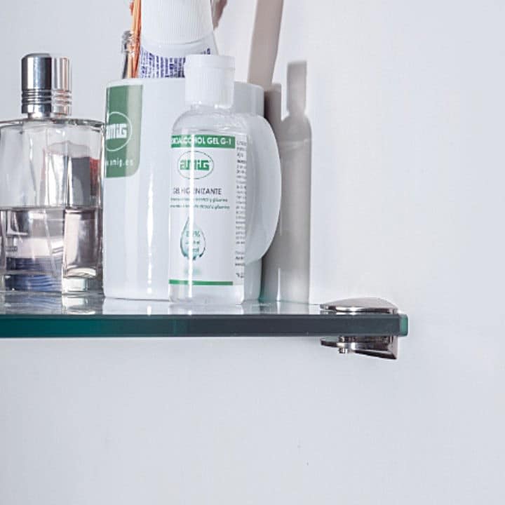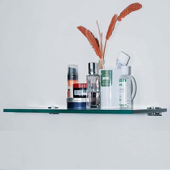 Soporte ovalado para baldas o estantes de cristal/vidrio.