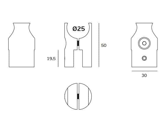 SOPORTE PARA CRISTAL, PARA TUBO DE Ø25mm.