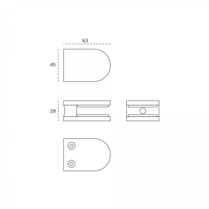 SOPORTE PARA CRISTAL, PARA TUBO DE Ø42.4mm.