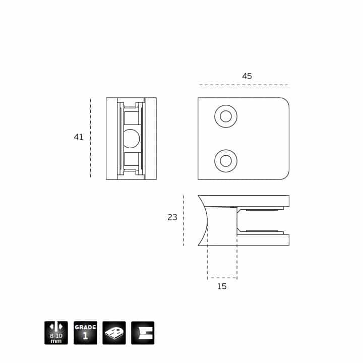 SOPORTE PARA CRISTAL PARA TUBO Ø42,4MM – JNF – INOX