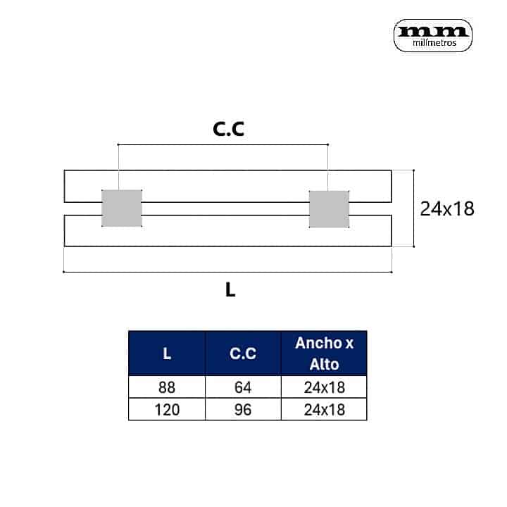 -Distancia entre ejes: 64mm / 96mm.